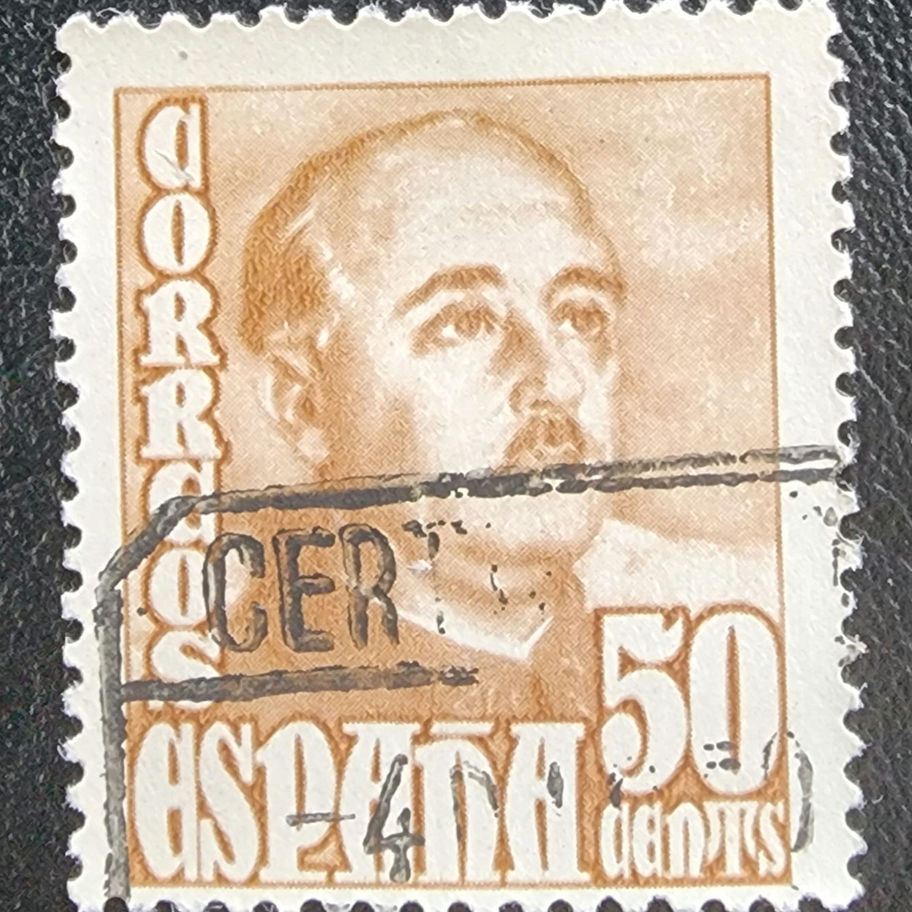 This Spanish 50c General Franco Stamp represents a specific moment in history. The design is quite striking and evokes a sense of the era. The colors chosen are bold and impactful. The details are finely etched and showcase the craftsmanship. It's a fascinating piece of history to examine. Preserving these artifacts allows us to reflect on the past. This stamp would be a valuable addition to any collection. Its historical significance is undeniable.